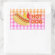 Sticker Rectangulaire Chien chaud sur En vichy nappe à pique-nique avec
