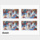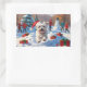 Sticker Rectangulaire Chien maltais courant dans la neige avec Casquette
