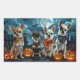 Libérez l'esprit éffrayant avec ce design d'Halloween étrange avec une meute de chiens sous un ciel sombre et clair de lune, entourée de chauves-souris volantes et de citrouilles brillants. Parfait pour ceux qui aiment une touche de plaisir effrayant avec leurs amis en fureur !