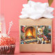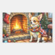 Sticker Rectangulaire Chihuahua Sitting Fireplace with Christmas Lights