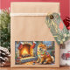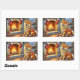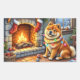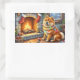 Sticker Rectangulaire Chow Chow Sitting Fireplace with Christmas Lights