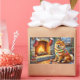 A festive Christmas artwork featuring a fluffy Chow Chow sitting beside a glowing fireplace adorned with stockings and twinkling Christmas lights. This cozy holiday scene beautifully captures the Chow Chow’s regal charm and gentle spirit, making it a perfect choice for dog lovers and seasonal home decor. Add warmth, joy, and a touch of fluffy elegance to your Christmas celebration with this heartwarming art piece.