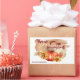 Citrouilles d'aquarelle, tournesols et feuilles d'automne sur un arrière - plan rose d'or avec étincelles. Stickers pour petites entreprises.