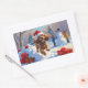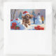 Sticker Rectangulaire Cocker Spaniel coule dans la neige avec le Casquet