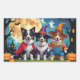Sticker Rectangulaire Collies frontalières Chiens Citrouille Halloween D