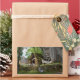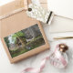 Autocollant photo rectangulaire avec oies marchant vers leur maison traditionnelle en pierre sur une ferme d'oies de foie gras près de Sarlat-la-Canéda en Dordogne, Périgord, France.