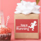 Le texte blanc dit "Gardez sur la course" avec la silhouette d'un homme courant avec un casquette. Le texte est traité avec un grunge doux. Conception simple mais excellente pour les joggeurs, les coureurs de marathon etc de se concentrer sur la course.