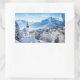 Une belle scène d'hiver avec montagnes et église, modifier le texte