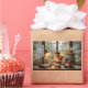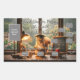 This adorable squirrel teacher — glasses on, pointer in paw, grad cap tilted just right — stands proudly in a cozy classroom with rainy window, soft lamp glow, steaming coffee mug, books, and a folded blanket.