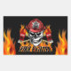 Sticker Rectangulaire Crâne pompier 4 et axes flammes
