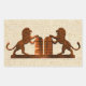Une "sculpture sur bois" générée par ordinateur, dans le style traditionnel ; des lions gardant les Dix Commandements.