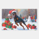 Un Doberman élégant court puissamment à travers la scène hivernale enneigée, portant un casquette de Noël rouge festif. Ce design saisissant met en valeur la construction sportive, la nature loyale et la personnalité spirituelle de la race tout en capturant la chaleur et la magie de la saison des fêtes. Un hiver audacieux, plein de charme festif.