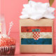 Le drapeau de la Croatie est fait pour paraître vieux et robuste. Des textures rugueuses recouvrent le drapeau, donnant à cet autocollant une sensation grincheuse. Ce drapeau croate dallé est une façon amusante et élégante de montrer son patriotisme.