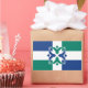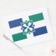 Stickers avec un design avec le drapeau de Columbia, Missouri. Un drapeau bleu et vert avec une croix blanche