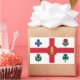 Sticker avec le drapeau de Montréal, la ville la plus peuplée de la province de Québec, Canada. Drapeau blanc avec croix rouge, pin blanc, fleur de lys bleu, rose rouge de Lancaster, shamrock et chardon