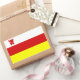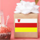 Sticker avec drapeau de la ville de Père Noël Barbara, Californie; drapeau avec tricolore vertical de blanc, rouge et jaune, avec illustration d'un fort rouge dans le coin supérieur gauche