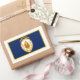 Sticker avec le drapeau de Springfield, Massachusetts. Un drapeau bleu avec un contour jaune et blanc et l'illustration de la statue d'Auguste Saint Gaudens au centre