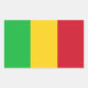 Le drapeau du Mali est un tricolore à trois bandes verticales égales. Du treuil (l'endroit où le mât à drapeau rencontre le drapeau) les couleurs sont le vert, l'or et le rouge, les couleurs panafricaines. Le drapeau est identique au drapeau de la Guinée, sauf que les couleurs sont en ordre inverse. Le drapeau actuel a été adopté le 1er mars 1961. Le drapeau original a été adopté le 4 avril 1959, lorsque le Mali a rejoint la Fédération du Mali. Ce drapeau était le même, sauf que la bande dorée avait une figure de bâton humain, un kanaga, en noir, avec des bras levés au ciel. Ce personnage a été supprimé à cause de l'opposition des fondamentalistes islamiques (voir l'aniconisme islamique, la croyance contre la prise de photos de la figure humaine). (Le Mali est à 90% musulman.) Le drapeau adopté en 1959 pour la Confédération était une imitation du drapeau du Ghana, mais suivant le style du Tricolore français. Elle a été changée avec un emblème noir connu sous le nom de kanaga, une figure humaine stylisée. Les couleurs étaient destinées à refléter une unité avec d'autres nations africaines. Après la scission des deux pays en 1960, le drapeau a été conservé au Mali jusqu'au 1er mars 1961, date à laquelle l'emblème de kanaga a été déposé.