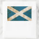 Le drapeau écossais est fait pour avoir l'air vieilli et robuste. Des textures rugueuses recouvrent le drapeau, donnant à cet autocollant une sensation grincheuse. Ce drapeau écossais dallé est une façon amusante et élégante de montrer son patriotisme.