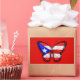Ce design unique présente le drapeau de Porto Rico sur un beau papillon. Le drapeau contourne les détails dans les ailes et les courbes autour du corps du papillon lui donnant un aspect réaliste. Les bords des ailes sont peints en noir et encadrent le drapeau portoricain à l'intérieur du motif. Cette merveilleuse créature volante est une combinaison parfaite de la nature et du patriotisme.