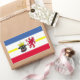 Sticker avec variante du drapeau de Mecklembourg-Poméranie occidentale; design avec cinq bandes horizontales de rouge, blanc, bleu et jaune, et avec des illustrations de la tête de taureau et de l’aigle rouge