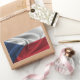 Sticker avec le drapeau de la République tchèque dans le style de tissu ondulé. Ce design présente les couleurs du drapeau tchèque et le design avec un bel effet texturé de matériau de tissage. Ce design de drapeau est une excellente façon de vous montrer fier d'être de la République Tchèque.