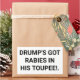 DRUMP A DES RABIES DANS SA TOUPEE. Bande dessinée Splash-Art autocollant design par Jeff Hankamer à Artjunkhaus