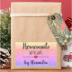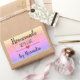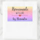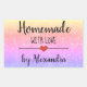 Autocollant rectangulaire moderne "fait maison avec amour" avec une police noire sur un arrière - plan de parties scintillant arc-en-ciel agrémenté d'un coeur mignon. Customiser du texte.