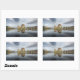 Un autocollant photo rectangulaire avec le château historique Eilean Donan Castle sur une matinée tranquille avec réflexion dans l'eau calme sur la côte ouest de l'Ecosse, près de l'île de Skye.