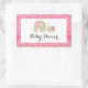 Sticker Rectangulaire Eléphant de Bohême rose et Baby shower Chevron