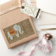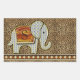 Ce design fantaisiste présente un adorable éléphant marchant sur une bordure à motif diamant. La couverture de l'éléphant forme un endroit pour tenir votre nom ou monogramme. Le design est chaleureux, orange et or sur un arrière - plan à motifs en peau de guépard.