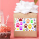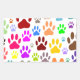 Images of dog paw prints all over. Colorful cartoon design. Custom rectangle. Poison idea for dog lovers.