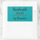 Sticker Rectangulaire Fabriqué à la main avec amour nom de script turquo