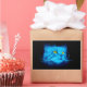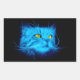 Un visage de chat bleu fractalisé avec des yeux jaunes étonnants contre un arrière - plan noir.