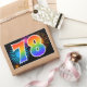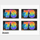 Ce design d'autocollant amusant et vibrant présente un motif coloré inspiré de feux d'artifice de célébration, ainsi que le nombre "78" avec un motif de dégradé arc-en-ciel multicolore, sur un fond de couleur noire. Des autocollants comme celui-ci pourraient peut-être être utilisés lors d'une fête célébrant le soixante-dix-huitième anniversaire de quelqu'un, ou peut-être pour les soixante-dix-huit ans de mariage d'un couple, ou pour un autre événement lié au 78.