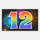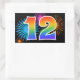 Ce design de stickers amusant et vibrant présente un motif coloré inspiré de feux d'artifice de célébration, ainsi que le nombre "12" avec un dégradé de couleurs arc-en-ciel multicolore, sur un fond de couleur noire. Des stickers comme celui-ci pourraient être offerts en petit cadeau lors de la célébration du douzième anniversaire de quelqu'un, ou peut-être pour les douze ans de mariage d'un couple, ou un autre événement marquant un douzième anniversaire.