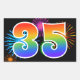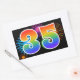 Cette conception d'autocollant amusante et vibrante présente un motif coloré inspiré de feux d'artifice de célébration, ainsi que le nombre "35" avec un motif de dégradé arc-en-ciel multicolore, sur un fond de couleur noire. Des autocollants comme celui-ci peuvent être offerts en petit cadeau lors de la célébration du trente-cinquième anniversaire de quelqu'un, ou peut-être pour le trente-cinquième anniversaire de mariage d'un couple, ou pour un autre événement 35e.