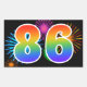 Cette conception d'autocollant amusante et vibrante présente un motif coloré inspiré de feux d'artifice de célébration, ainsi que le nombre "86" ayant un motif de dégradé inspiré d'un arc-en-ciel multicolore, sur un fond de couleur noire. Des autocollants comme celui-ci pourraient peut-être être offerts en petit cadeau lors de la célébration du quatre-vingt-sixième anniversaire de quelqu'un, ou peut-être pour un quatre-vingt-sixième anniversaire de mariage de couple, ou un autre événement 86. [~Z0000324]