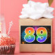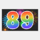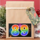 Cette conception d'autocollant amusante et vibrante présente un motif coloré inspiré de feux d'artifice de célébration, ainsi que le nombre "89" ayant un motif de dégradé inspiré d'un arc-en-ciel multicolore, sur un fond de couleur noire. Des autocollants comme celui-ci pourraient être utilisés lors d'une fête célébrant le quatre-vingt-neuvième anniversaire de quelqu'un, ou peut-être pour le quatre-vingt-neuvième anniversaire de mariage d'un couple, ou pour un autre événement lié au 89.