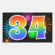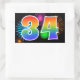 Ce design d'autocollants amusant et vibrant présente un motif coloré de feux d'artifice de célébration, ainsi que le nombre "34" avec un motif de dégradé arc-en-ciel multicolore, sur un fond de couleur noire. Des autocollants comme celui-ci pourraient être utilisés lors d'une fête célébrant le trente-quatrième anniversaire de quelqu'un, ou peut-être pour le trente-quatrième anniversaire de mariage d'un couple, ou un autre événement 34ème.