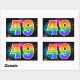 Cette conception d'autocollant amusante et vibrante présente un motif coloré inspiré de feux d'artifice de célébration, ainsi que le nombre "49" ayant un motif de dégradé inspiré d'un arc-en-ciel multicolore, sur un fond de couleur noire. Des autocollants comme celui-ci pourraient être utilisés lors d'une fête célébrant le quarante-neuvième anniversaire de quelqu'un, ou peut-être pour le quarante-neuvième anniversaire de mariage d'un couple, ou pour un autre événement 49.