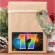 Ce design d'autocollant amusant et vibrant présente un motif coloré inspiré des feux d'artifice de célébration, ainsi que le nombre "17" avec un motif de dégradé multicolore comme un arc-en-ciel, sur un fond de couleur noire. Des autocollants comme celui-ci pourraient être utilisés lors d'une fête pour célébrer le dix-septième anniversaire de quelqu'un, ou peut-être pour le dix-septième anniversaire de mariage d'un couple, ou un autre événement 17. [~Z0000324]