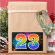 Ce design d'autocollant amusant et vibrant présente un motif inspiré de feux d'artifice de célébration colorés, ainsi que le nombre "23" ayant un motif de dégradé multicolore comme un arc-en-ciel, sur un fond de couleur noire. Des autocollants comme celui-ci pourraient peut-être être utilisés lors d'une fête célébrant le vingt-troisième anniversaire de quelqu'un, ou peut-être pour le vingt-troisième anniversaire de mariage d'un couple, ou pour un autre événement 23. [~Z0000324]