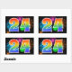 Ce design d'autocollant amusant et vibrant présente un motif inspiré de feux d'artifice de célébration colorés, ainsi que le nombre "24" avec un motif de dégradé inspiré d'un arc-en-ciel multicolore, sur un fond de couleur noire. Des autocollants comme celui-ci pourraient être utilisés lors d'une fête célébrant le vingt-quatrième anniversaire de quelqu'un, ou peut-être pour le vingt-quatrième anniversaire de mariage d'un couple, ou pour un autre événement 24. [~Z0000324]