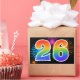 Ce design d'autocollant amusant et vibrant présente un motif coloré inspiré des feux d'artifice de célébration, ainsi que le nombre "26" ayant un motif dégradé arc-en-ciel multicolore, sur un fond de couleur noire. Des autocollants comme celui-ci pourraient être utilisés lors d'une fête célébrant le vingt-sixième anniversaire de quelqu'un, ou peut-être pour le vingt-sixième anniversaire de mariage d'un couple, ou pour un autre événement 26. [~Z0000324]