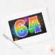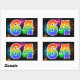 Ce design d'autocollant amusant et vibrant présente un motif inspiré de feux d'artifice de célébration colorés, ainsi que le nombre "64" avec un motif de dégradé arc-en-ciel multicolore, sur un fond de couleur noire. Des autocollants comme celui-ci pourraient être utilisés lors d'une fête célébrant le soixante-quatrième anniversaire de quelqu'un, ou peut-être pour le soixante-quatrième anniversaire de mariage d'un couple, ou pour un autre événement 64. [~Z0000324]