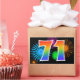 Ce design d'autocollant amusant et vibrant présente un motif coloré inspiré des feux d'artifice de célébration, ainsi que le nombre "71" avec un motif dégradé arc-en-ciel multicolore, sur un fond de couleur noire. Des autocollants comme celui-ci pourraient être offerts en cadeau lors de la célébration du soixante et onzième anniversaire de quelqu'un, ou peut-être pour les soixante et un ans de mariage d'un couple, ou pour un autre événement lié au 71. [~Z0000324]