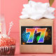 Ce design d'autocollant amusant et vibrant présente un motif inspiré de feux d'artifice de célébration colorés, ainsi que le nombre "77" ayant un motif de dégradé de couleur arc-en-ciel multicolore, sur un fond de couleur noire. Des autocollants comme celui-ci pourraient peut-être être offerts en petit cadeau lors de la célébration du soixante-dix-septième anniversaire de quelqu'un, ou peut-être pour un soixante-dix-septième anniversaire de mariage de couple, ou un autre événement 77. [~Z0000324]