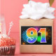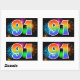 Ce design d'autocollant amusant et vibrant présente un motif coloré inspiré des feux d'artifice de célébration, ainsi que le nombre "91" ayant un motif de dégradé arc-en-ciel multicolore, sur un fond de couleur noire. Des autocollants comme celui-ci pourraient peut-être être utilisés lors d'une fête célébrant le quatre-vingt-onzième anniversaire de quelqu'un, ou peut-être pour le quatre-vingt-onzième anniversaire de mariage d'un couple, ou pour un autre événement 91. [~Z0000324]