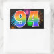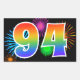 Ce design d'autocollant amusant et vibrant présente un motif inspiré de feux d'artifice de célébration colorés, ainsi que le nombre "94" ayant un motif de dégradé multicolore semblable à un arc-en-ciel, sur un fond de couleur noire. Des autocollants comme celui-ci pourraient peut-être être offerts en cadeau lors de la célébration du quatre-vingt-quatorzième anniversaire de quelqu'un, ou peut-être pour les quatre-vingt-quatorzièmes noces d'un couple, ou pour un autre événement 94. [~Z0000324]